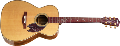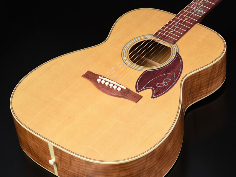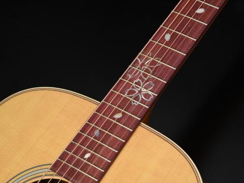 日本人にとっても非常に馴染み深い品種であるソメイヨシノ。このモデルに使われている材は長野県南信産のソメイヨシノです。ヘッドインレイ・指板インレイ・ピックガードのデザインも一新。桜の花びらをモチーフにしたデザインで、インレイ材は”ピンクパール”を使用しました。桜材の明るくきらびやかなサウンドをお楽しみ頂けます。