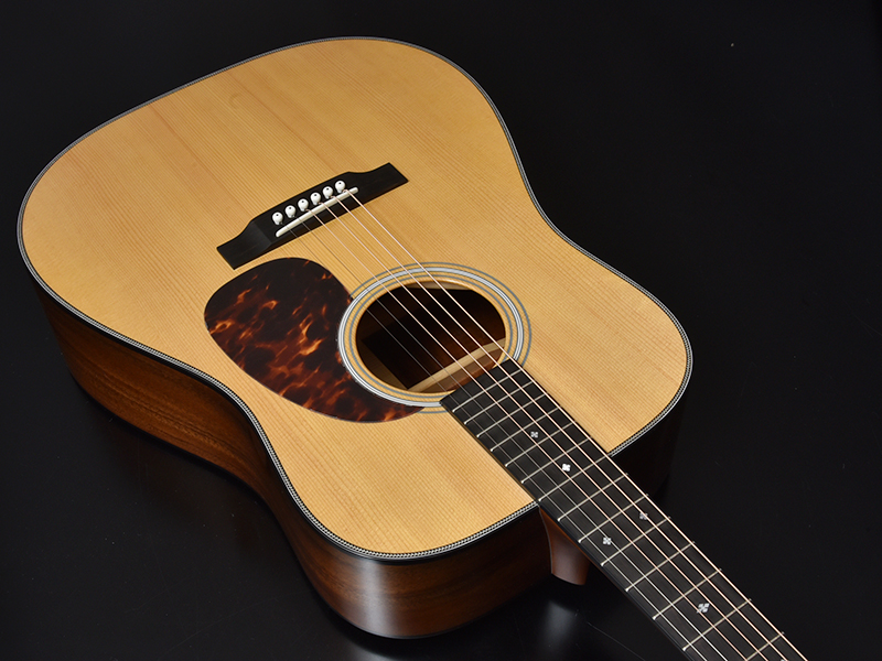 コアの木はマメ科アカシア属の木材であり、ウクレレに使用する木材としてもポピュラーです。その性質は硬く、ギターにした時のサウンドも比較的明るくハリのあるサウンドが期待できます。フォワードシフトブレイシングと相まって十分な鳴りときらびやかな高音が印象的なモデルに仕上がりました。