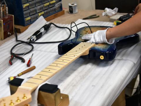 Workshop Deviser Guitarsの職人がひとつひとつ丁寧に組み上げます。通常のレギュラー品では使用されないパーツを使用しています。