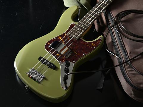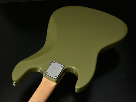 少しトーンを落としたモスグリーンっぽい渋めカラーが印象的で、べっ甲ピックガードとも非常に相性の良いモデルに仕上がっています。
