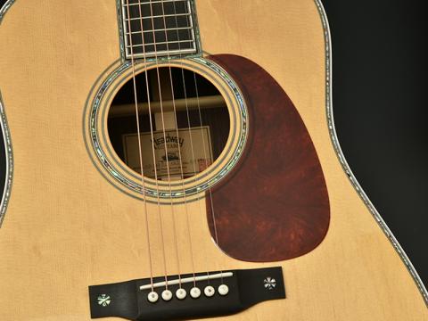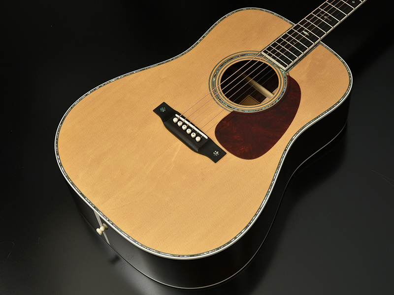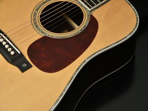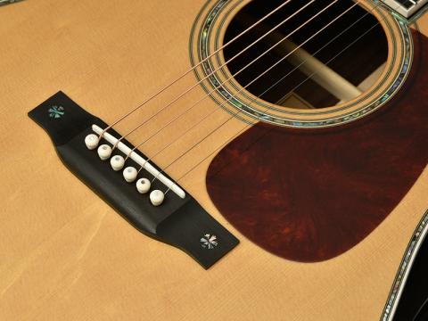 ボディトップには、熊が爪で引っ掻いた跡の様に見えるところからその名がついた「ベアクロー・シトカスプルース」を採用。希少性もあり、通常の均整のとれた木目のシトカスプルースに比べ木質が複雑になることから、音質面でも深みが増すと見る向きもあります。