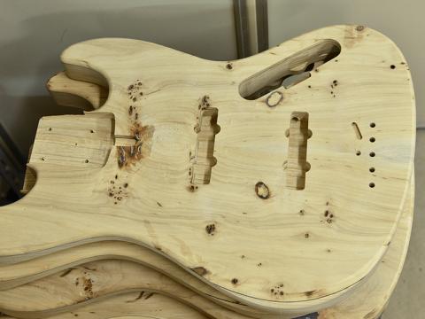 ボディトップにはバール杢が浮かぶポプラ材を使用しました。木の根付近の材は瘤杢(こぶもく)が多く見られ、生命力に満ちたその外観は、見るものを惹きこむ力があります。