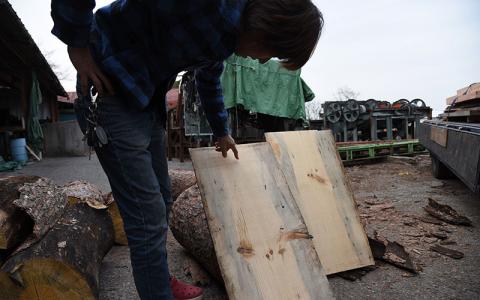 2017年の3月に切り出したアカマツは、切り出した時点ではまだどれだけ形に出来るか見えない状況だったこともあり、製材されたのは一つの丸太のみ。その丸太もそこまで大きなものでは無かったため、ボディに切り出せるのはギター2本分しかありません。