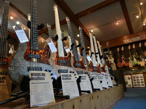 楽器の展示だけではなく、ファクトリーの製作風景もご覧いただけます。ご来場者の方は木材ストックをクラフトマンと選びながら、オーダーギターの企画を打ち合わせることも可能です。