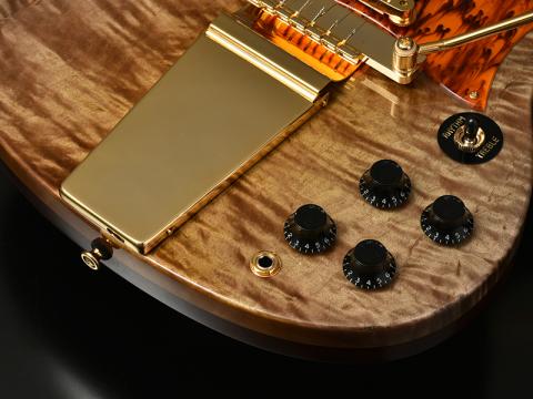 エレキギターで一際異彩を放っていたのが8弦、7弦モデル。BacchusのTモデルをベースとしたオーセンティックなルックスながら、ボディトップのエキゾチックウッドが強烈なインパクトを放ちます。