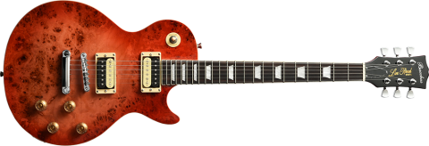 ボディトップに「バールポプラ」を採用した、上位機種にも引けを取らない華やかな外観に仕上がっています。ハムバッカーの分厚いサウンドが特徴的なモデルに仕上がりました。コストパフォーマンスに優れており、お気軽にお試しいただけるモデルです。