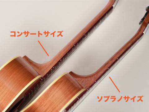 ソプラノウクレレとコンサートウクレレ、ぱっと見た感じはどちらがどっちかわからなくなってしまいそうです。