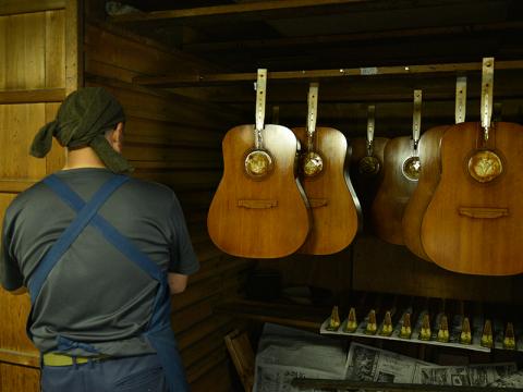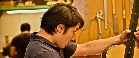 先日、アコースティックギターの漆塗りが終了した段階で工房の作業場 へ伺わせていただきました。
