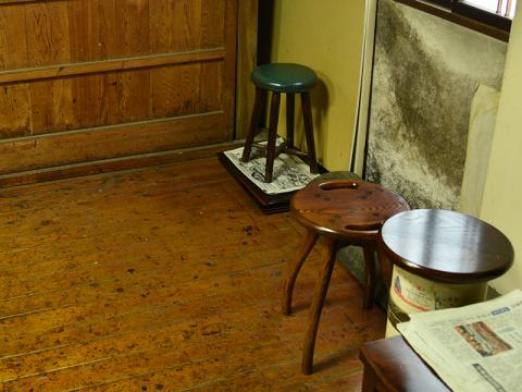 床や椅子がすべて漆塗りで、重厚で優しい色合いに包まれた作業場です。(今回の漆モデルは前年に続いて「後仕込み」を採用)