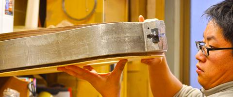 直線の板と板を接着するのは慣れていますが、曲線同士の板を接着することは想像以上に大変なものでした。治具を用意することで実現しましたが、苦労の分だけ外観にも少し柔らかな印象を加えることができました。