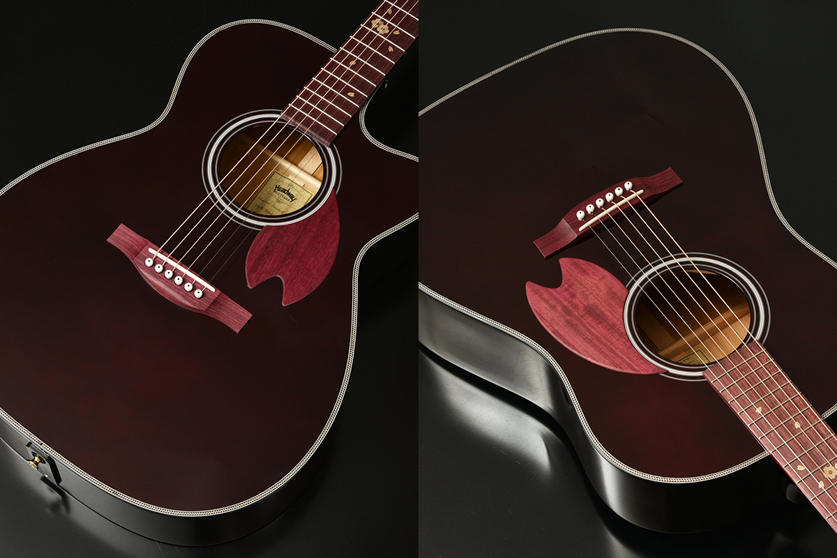 こちらはHC-Yozakura F,S/STDのみの仕様ですが、カッタウェイモデルのこちらにはFISHMANのピックアップを搭載しております!