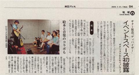 公開時期 2019/7/17 Introduction 信濃毎日新聞社発行の地方紙・MGプレスにDeviser Secret Baseで開催されたわたなべゆうさんのライブの様子が掲載されました。 Brand Headway Guitars 作成者:dev-web6 作成日:2019/7/17(水) 10:17