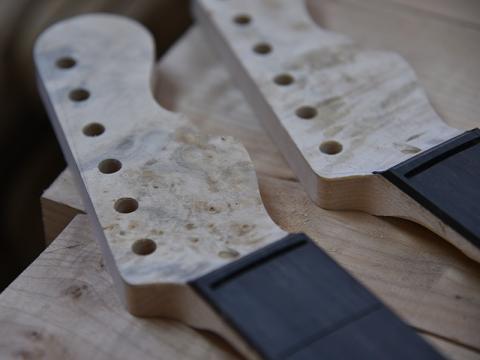 今回使用したバックアイバールトチは、これでのフレイム材の様な特徴がありつつ、バール杢も入っているスペシャルな材料となっております。