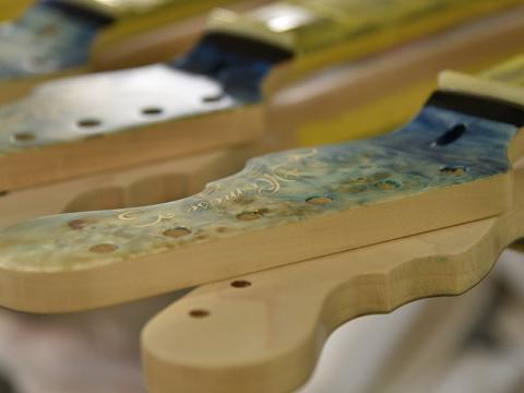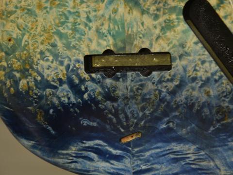 また、ピックガードのカラーリングもカラーリングに合わせ特注したダークブルーのパールピックガードを採用しております。ボディカラーと絶妙のマッチングがこのモデルの魅力を高めております。
