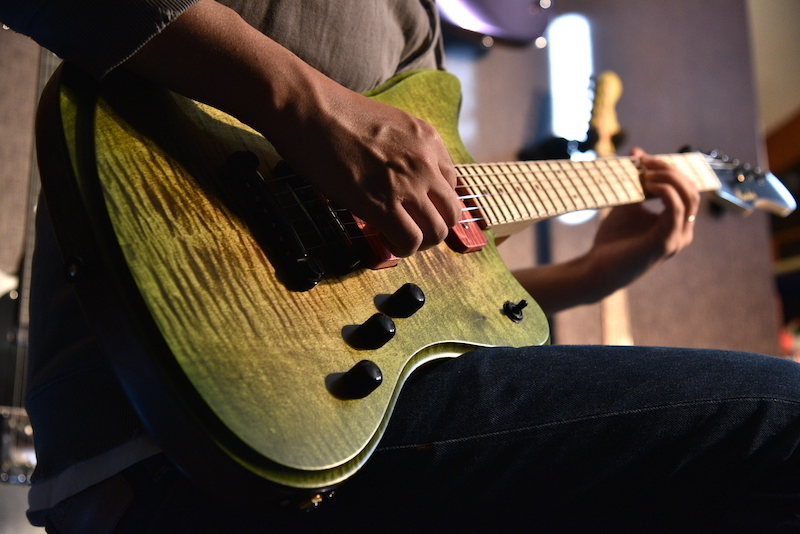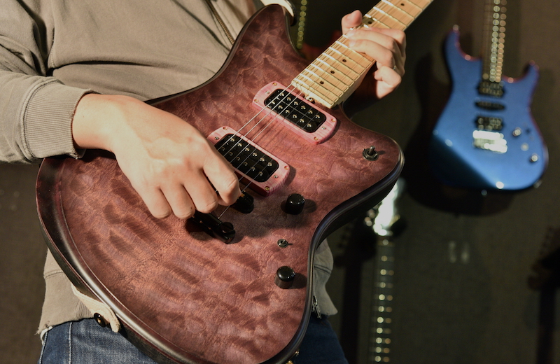 満を辞して今回のone day guitar showにてTOP材を貼り付けたモデルを2本のみ製作いたしました!