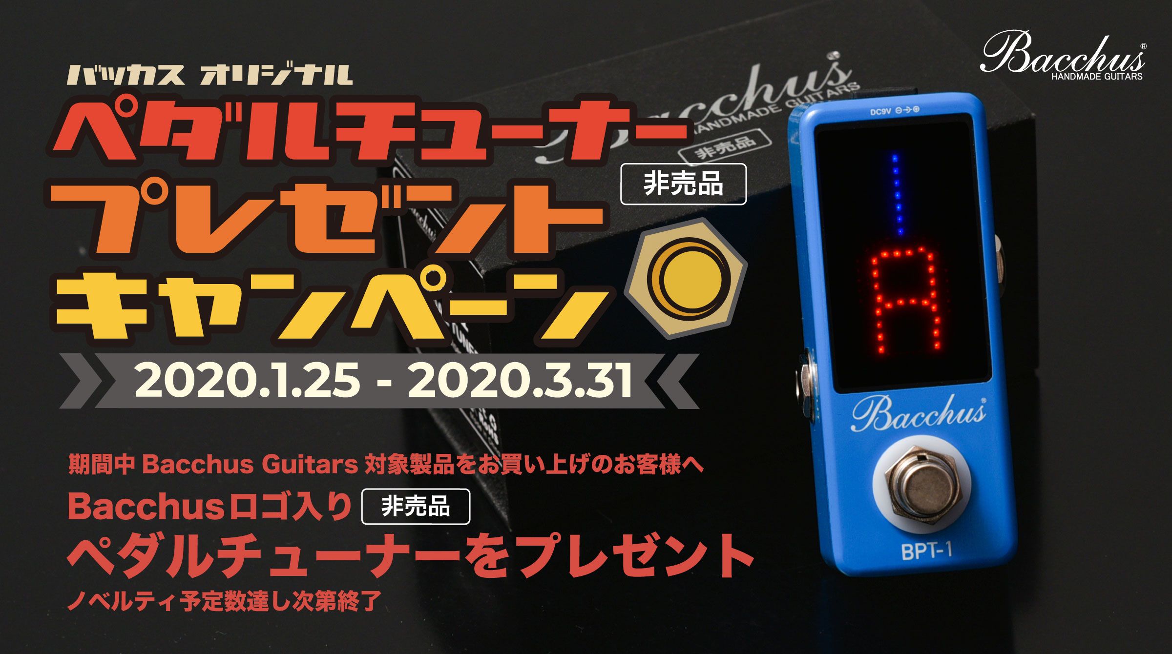 現在、Bacchus Guitarsでは「オリジナルペダルチューナー(非売品)プレゼントキャンペーン」を展開中です。