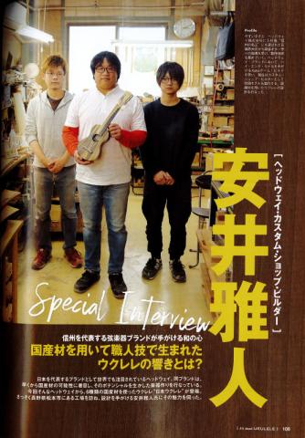 特集ページではヘッドウェイマスタービルダー安井雅人のインタビューで日本の木材によるウクレレづくりのきっかけや苦労話を取り上げて頂いております。