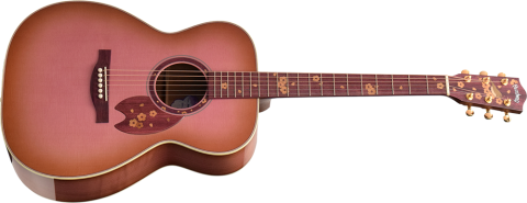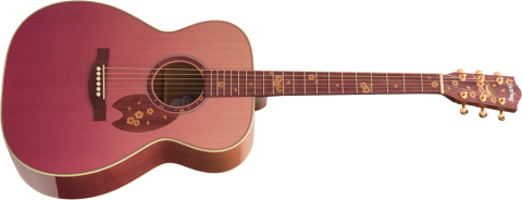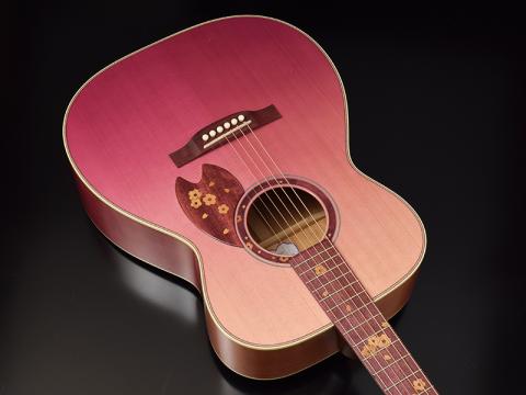 サウンドホールラベルには、桜の形をしたオリジナルデザインを採用。ボディカラーとマッチした淡い紫色を採用しています。