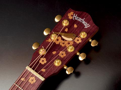 ヘッドインレイには「桜とメジロ」をモチーフとした、可愛らしいインレイを採用。