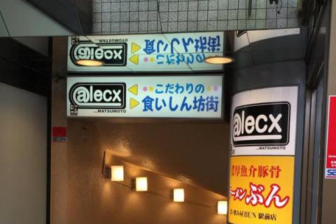 今日のお店はこちら。「ラーメンぶん」の上に書いてあるALECXさんです。松本駅からほど近いビルのB1Fです。