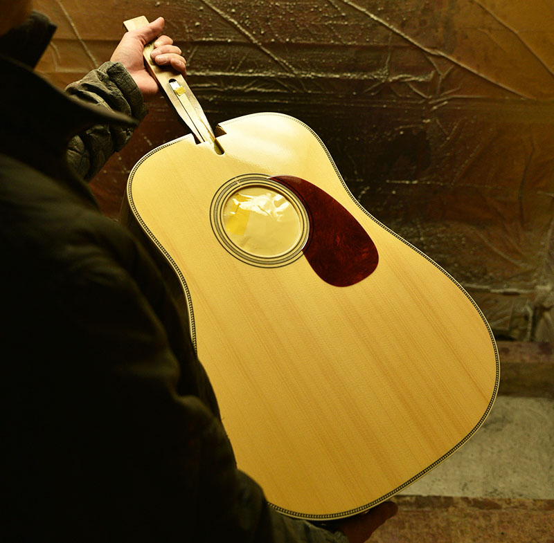 希少性が高くサウンドにも大きく影響を与える「アディロンダックスプルース」をボディトップに採用。