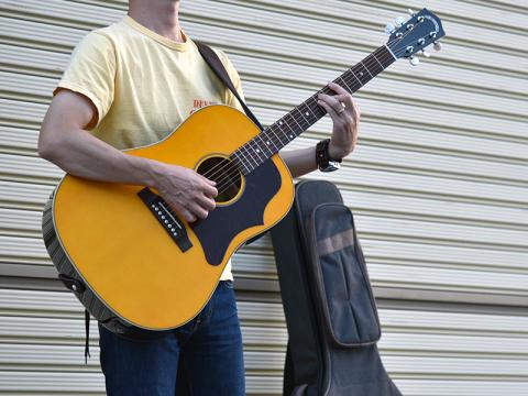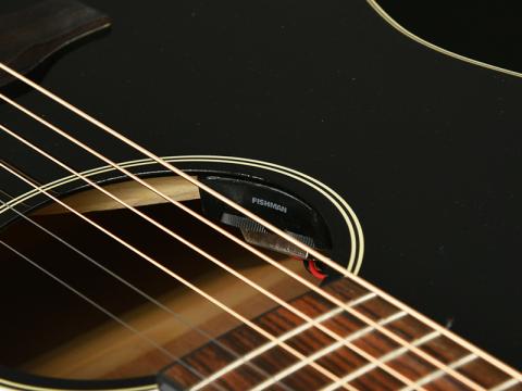 ヒール部分にはストラップピンが標準装備されています。また、「Fishman Sonitone」ピックアップを搭載しており、アンプへの出力も可能です。サウンドホール内のコントロールから手軽にサウンドメイクができます。