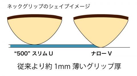 そこで500番は、多くのギタリストに違和感なく、弾きやすく感じられるオリジナルのスリムUシェイプに設計し直しました。