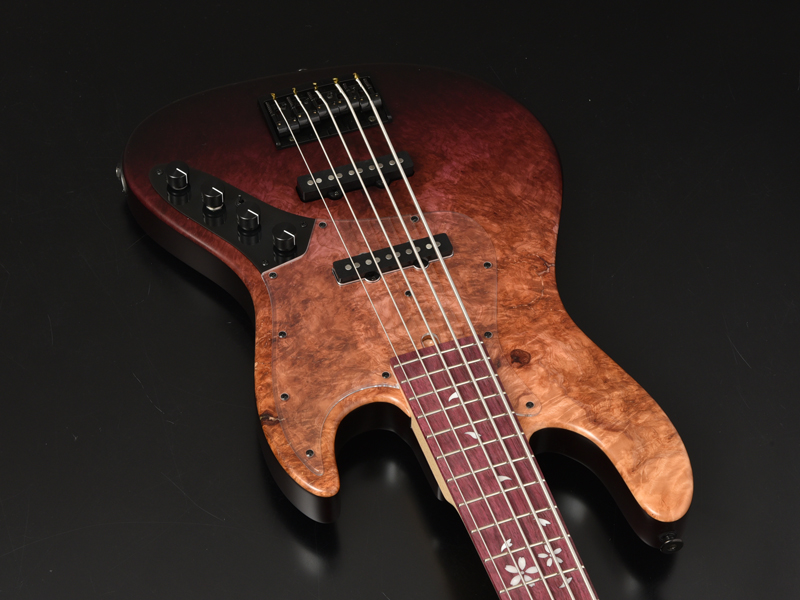 Aguilar OBP-2TK:Aguilar OBP-2プリアンプを搭載しより重厚な音作りも可能です。ボディトップにはバール杢が特徴的なバール杢の入った桜材を使用し、なお一層華やかなモデルに仕上がりました。