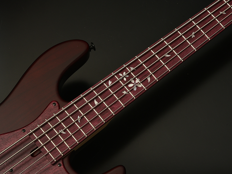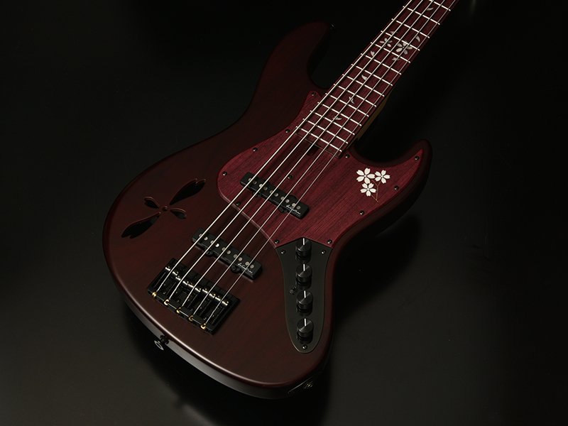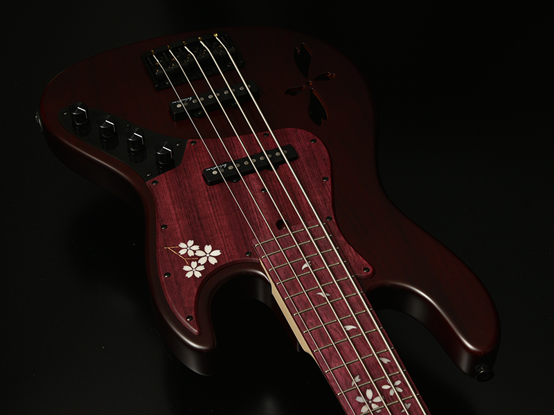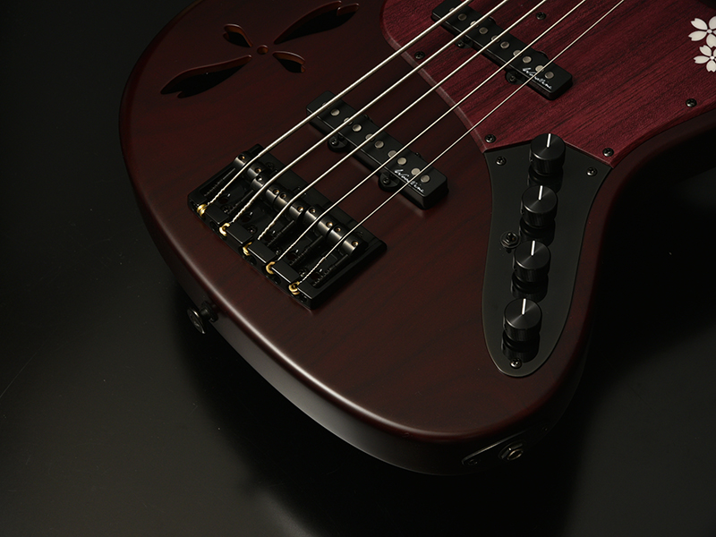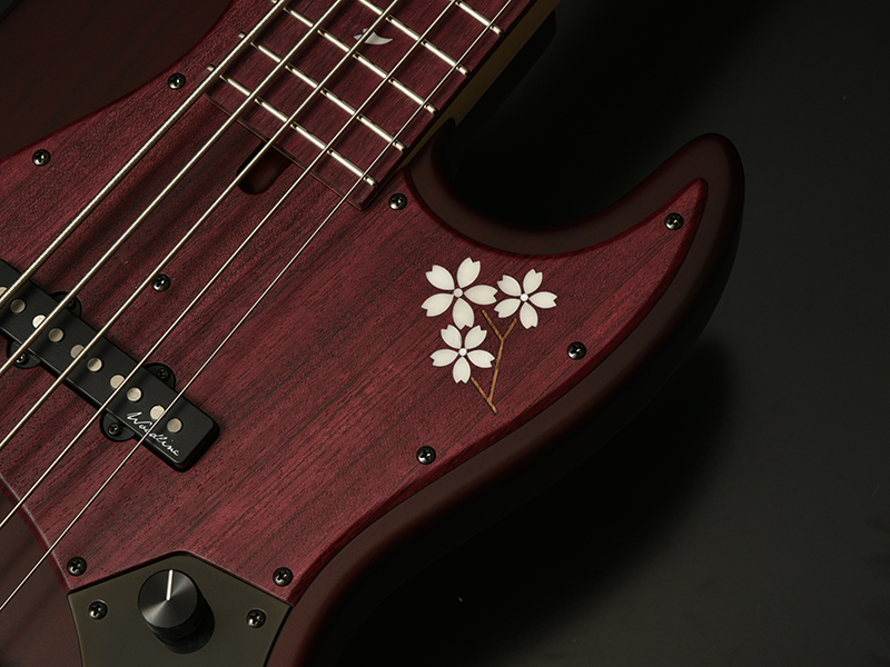 Sakura Hollow Body:飛鳥工場で使用される和材のなかでも特に人気の高い「桜」をボディに採用しました。ボディ低音側を大きくくり抜いたホロウ構造を採用しており、桜の花びらをモチーフとしたホールが印象的なモデルです。ポジションマークなど随所に桜のモチーフを入れ、見た目も華やかな楽器に仕上がりました。桜の季節は短いですが、桜モデルなら年中好きな時に楽しめます。