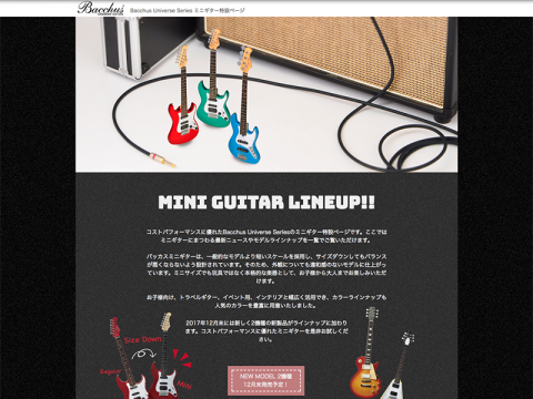 こちらのページではBacchus Universe Seriesのミニギターモデルラインナップをご覧いただけます。製品ページへのリンクや最新ニュース等、気軽にアクセスいただけます。