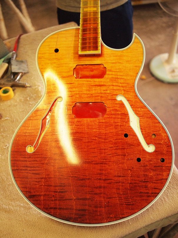 HAWK-GF16 SRG was originally released as a limited model for Tokyo Music Fair 2016. As it received quite nice feedback during the show, we reproduced this very guitar for Guitar Summit. The idea of the red gradation finish comes from sunset reflected on ocean. It comes equiped with Mojotone Classic humbucker, a hand-wired pickup made by Mojotone in USA. It has a PAF-like tone with a little bit more bottom and sustain.