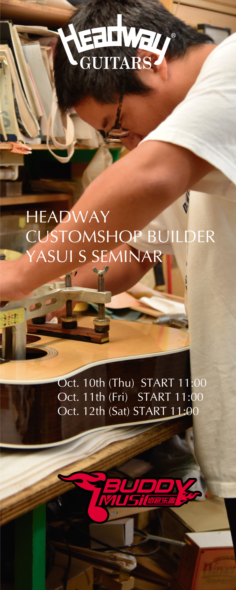 Headway Customshop builder Yasui Masto will join Music China 2019 and will hold Headawy guitar workshop. He will make presentations about Headway history, our techineque, and our newest models including customshop guitars HC-HANAMIDORI and HC-ASH CTM built by himself.