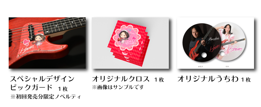 The special pickguard has a 2D illustration of H.J.Freaks and is signed by H.J.Freaks himself! The complimentary items are limited only to the first batch and the original cleaning cloth comes with an original illustration and a special design. The original Japanese fan comes with bold photographs from H.J.Freaks.