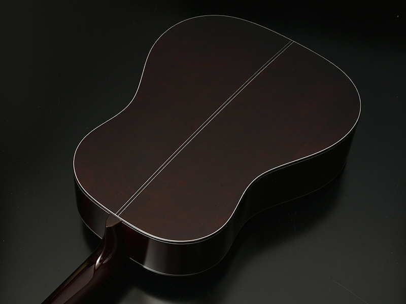 ARS Bracing:ブレイシングには2017年より製品化されたARS(アドバンスドリアシフトブレイシング)を採用。ノーマルの位置から若干ブリッジ側に寄せたレイアウトであり、1音1音しっかりと鳴り響き、芯のある迫力のサウンドを実現。また、位置をブリッジ側へ寄せることでトップ材に対しての丈夫さも増しています。