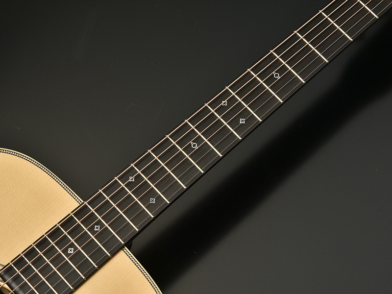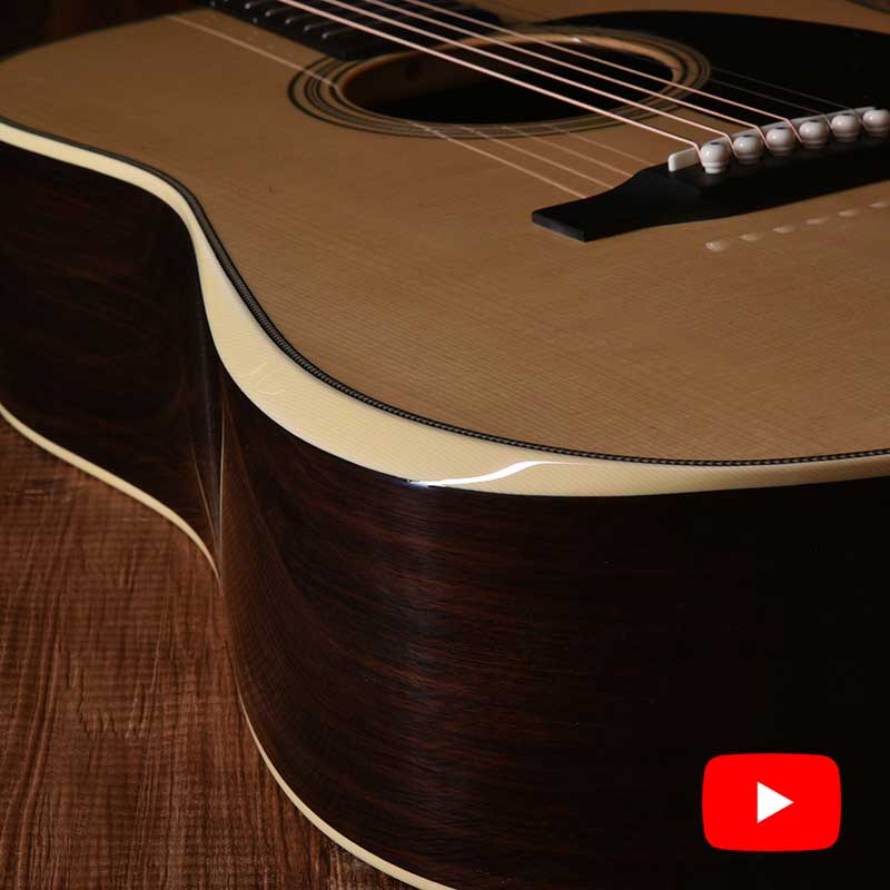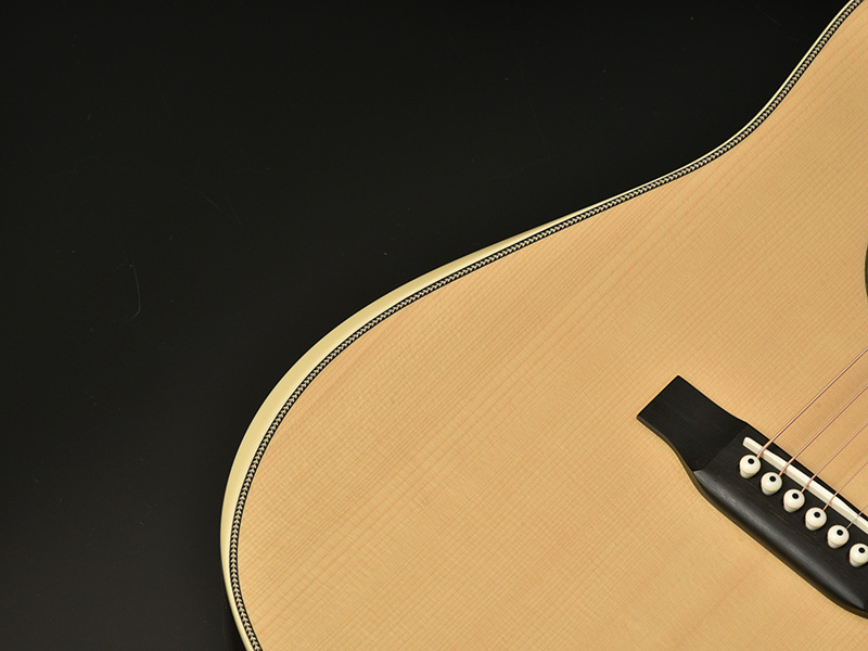 I went for the extremely rare Adirondack Spruce for the body top. The main feature is the back design made out of 3 piece Cross-round Flamed Kaede design that alongside the Indian rosewood used for the rest of the side and back combined for a high-quality, beautiful looking result. Additionally, I went for a double X bracing that greatly improves durability and stability so you can keep using this great instrument for a long time.