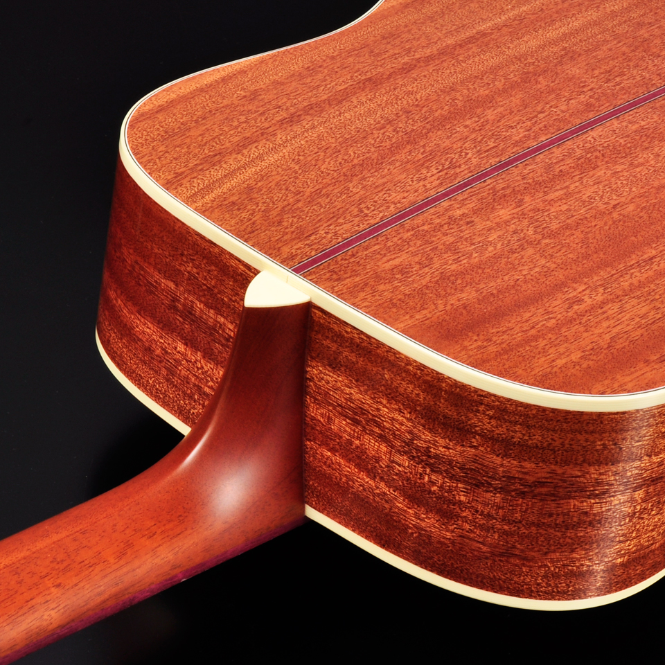 サウンド面ではフォワードシフトスキャロップブレイシングにより、より軽いタッチでも十分な鳴りが得られ、マホガニーならではの中域が豊かな、温かみある音色です。