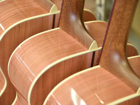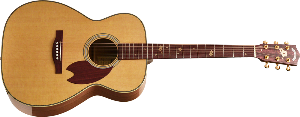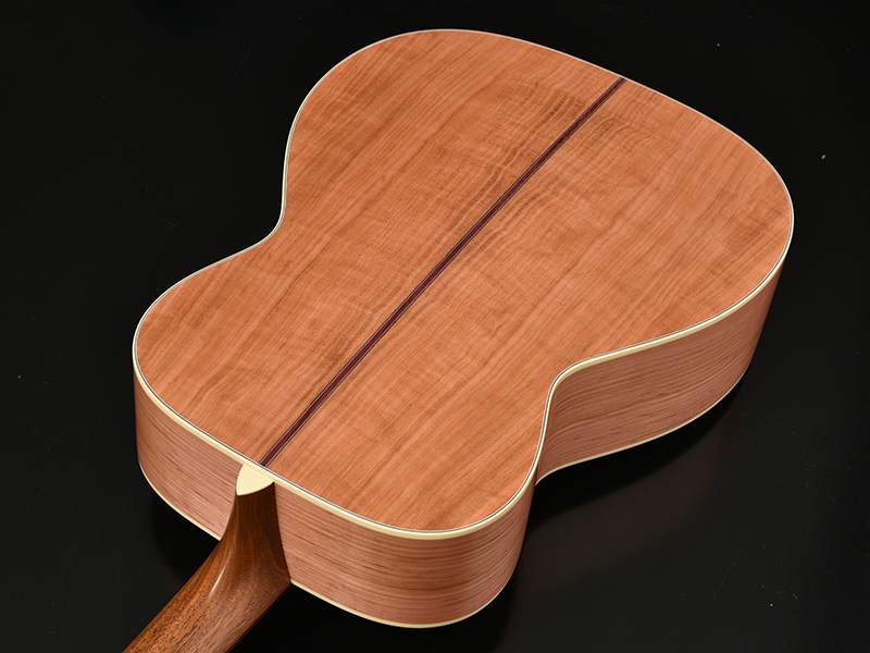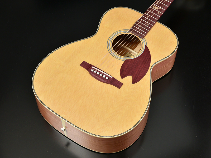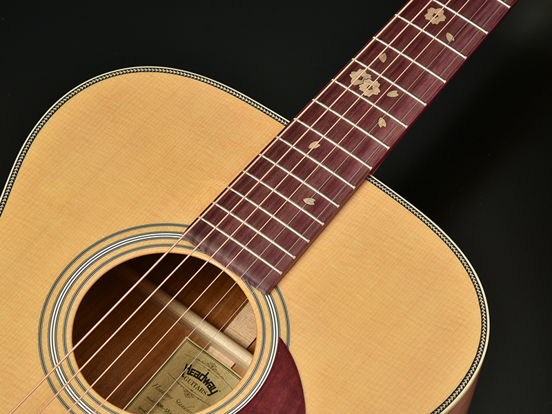 基本となるボディの形状はHFと同様くびれの深いアウトライン。そこへ645mmスケールでネックを組むHOMシェイプを採用しました。深胴ボディを採用し、抱えやすいながらもストロークしたときの鳴りの深さ、豊かな低音が魅力です。