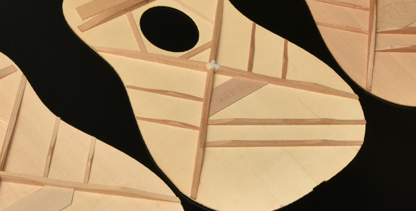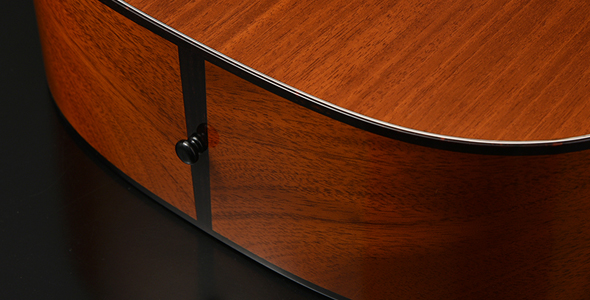 The bracing of the inside of the HOM body and the front board are based on the “Advanced Rear Shifted X Bracing” design (ARS bracing) that has been actively adopted by Headway in recent years, we moved the crossing position of the X slightly closer to the soundhole for what we call our "Semi-rear shift" design.