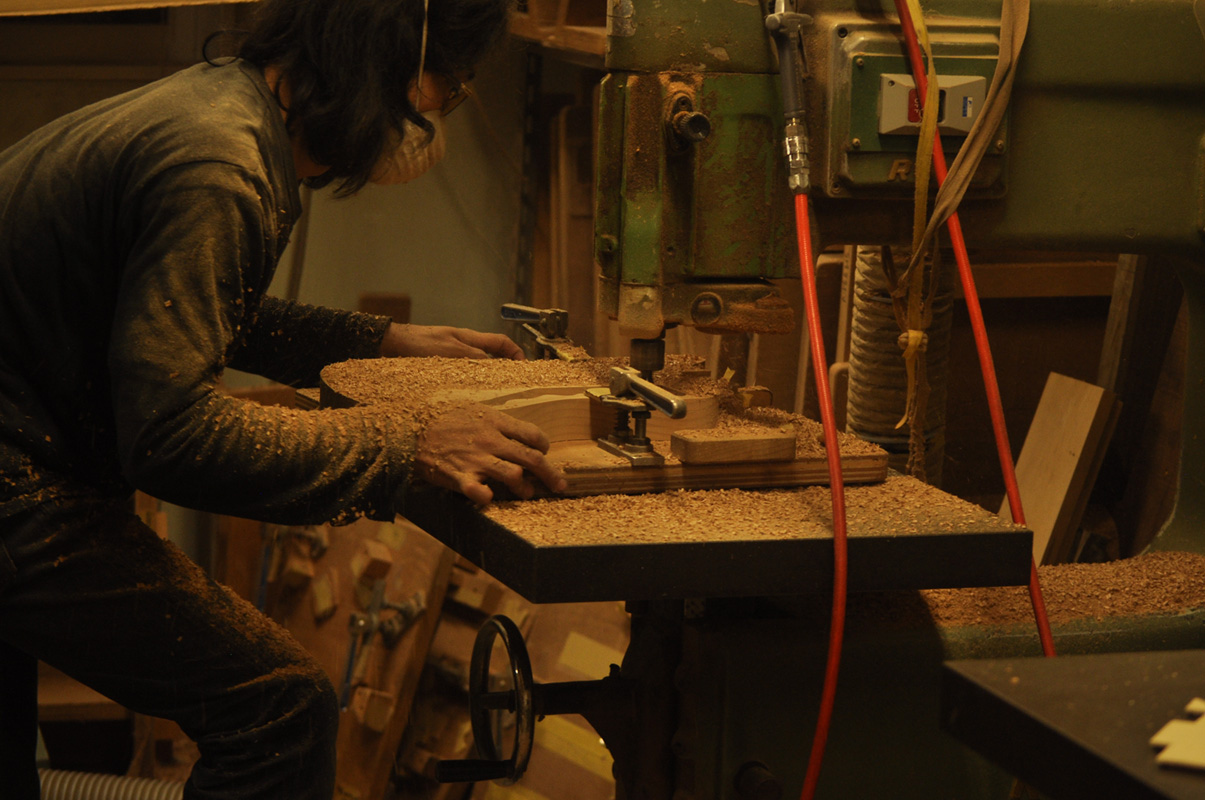 百瀬は国産最高峰のアコースティックブランド・HEADWAYを立ち上げた1977年から30年にわたり、技術の中枢として全ての製作工程の礎を築いてきました。自ら加工・製作用の各種治具を考案し、エレクトリックギターの黎明期から現在に至るまで、日本の様々なハイエンド・ギターメーカーのOEM製作に携わってきたのです。