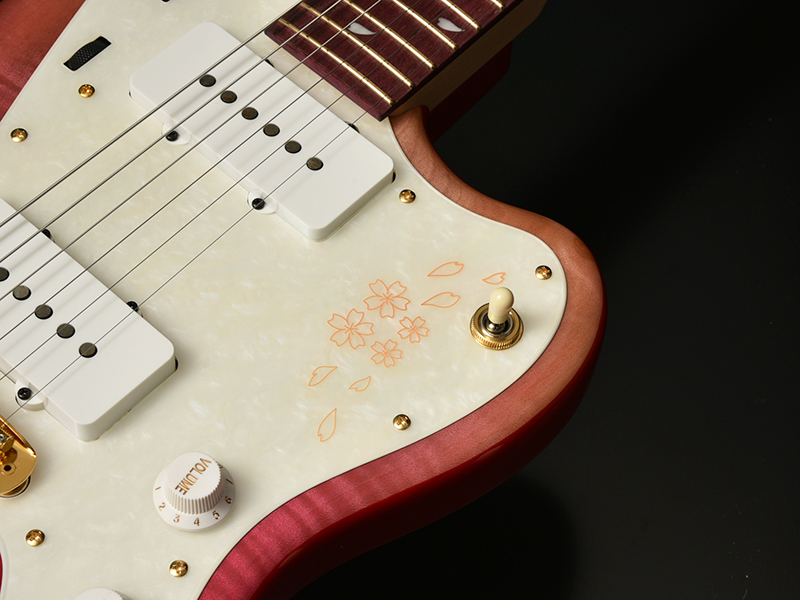 White Flame Sakura:飛鳥工場で使用される和材のなかでも特に人気の高い「桜」をボディトップに採用しました。フレイム杢の入った桜材を採用し、杢目を活かすグラデーションカラーとバーストカラーで仕上げています。桜の季節は短いですが、桜モデルなら年中好きな時に楽しめます。
