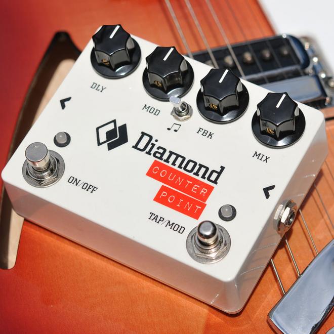 1. Vintage (緑の点滅) 600msが最大ディレイタイムの、Counter Pointにおいて最もスタンダードなディレイ。AutoDouble(TMマーク)機能に対応し、最大ディレイタイムを超えて600ms〜1,200msの間隔でタップした場合、自動的に半分の長さ(300ms〜600ms)のディレイタイムに調整されます。 2. Galloping Eight(黄色の点滅) タップのテンポの3/4の間隔でディレイタイムが設定されるモード。タップのテンポを4分音符としたときに、付点8分のタイミングでディレイが返ってきます。またより小さい音量で4分音符のディレイが同時に返ってきて「タッタタタッタタ」という跳ねるようなグルーブが生まれます。 3. Ambient(赤の点滅) 異なる3つのディレイタイムが組み合わされ、複雑なディレイが返ってくるモードです。他のモードと比べて、ディレイ音の音量が小さく、リバーブのような感覚での使用が可能です。 4. Extra Faux Tape(EFT)(緑と赤の点滅) 最大1,200msの間隔で、クリーンで原音に近いディレイ音が返ってくるモード。モジュレーション機がONの際、ディレイタイムと同じ間隔でモジュレーションが変化します。