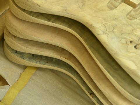 飛鳥ファクトリーの木材ストックの中でも特に希少で個性的な材を使用して不定期製作する特別モデル「Exotic Wood Custom」。今年の楽器フェアにもEWCモデルをギター・ベース共に展示予定でございます。