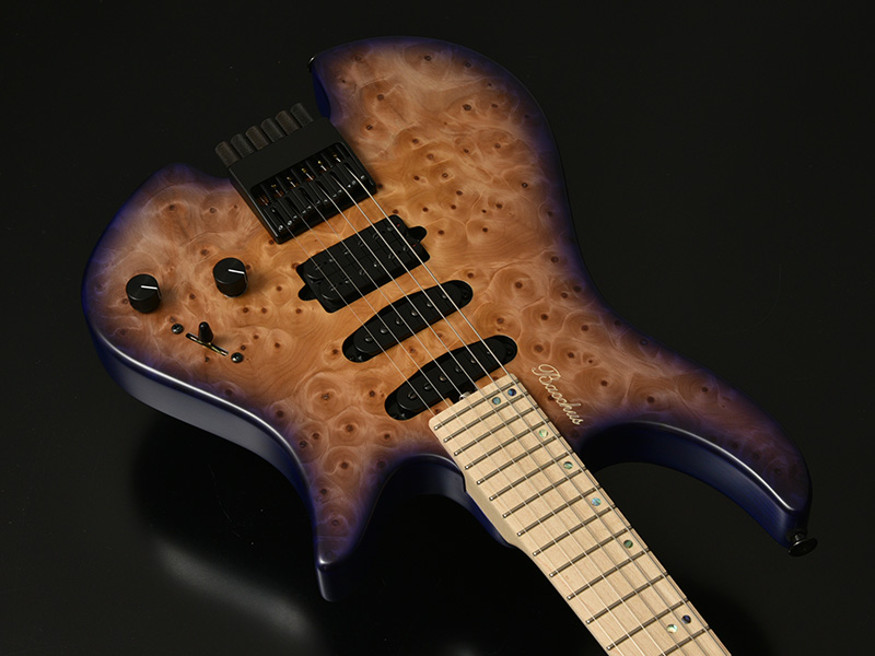 飛鳥ファクトリーメイドのヘッドレスギターは全て限定製作です。中でもこの個体はエキゾチックウッドを配した限定1本製作となります。