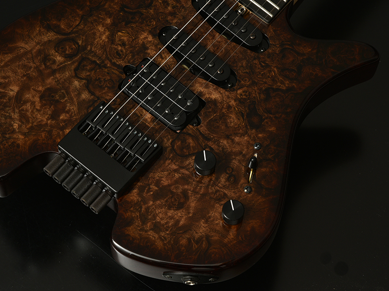 飛鳥ファクトリーメイドのヘッドレスギターは全て限定製作です。中でもこの個体はエキゾチックウッドを配した限定1本製作となります。