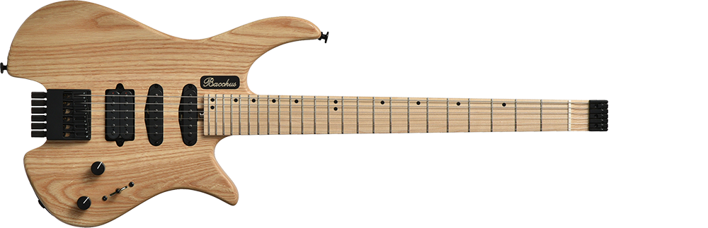 飛鳥ファクトリーメイドのヘッドレスギターは全て限定製作です。アッシュボディ、エボニー指板、メイプルネックというスタンダードな木材の構成。Bacchusお得意のオイルフィニッシュで仕上げました。