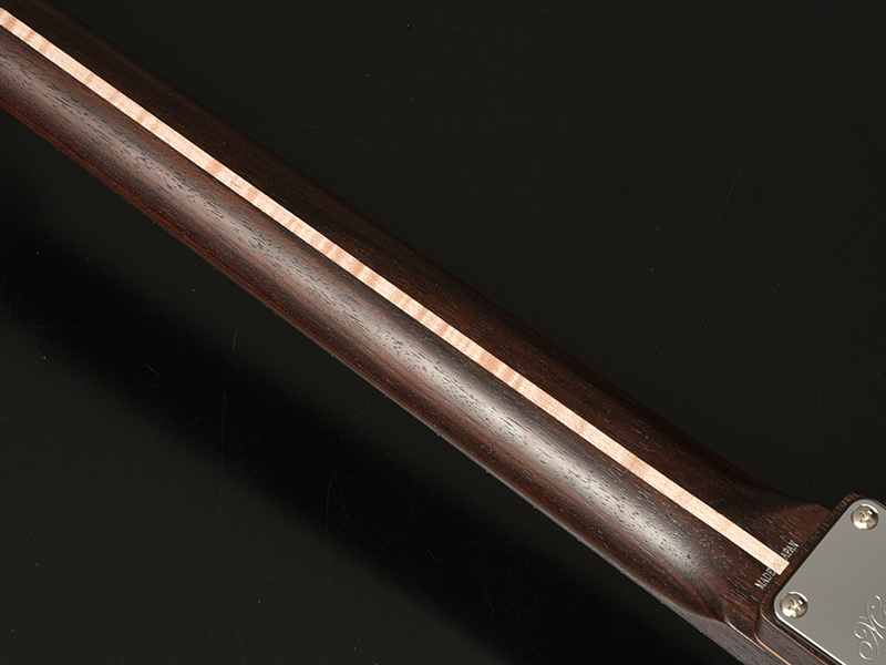 飛鳥ファクトリーの中で最も希少な大型のローズウッドを使用した、まさかの1ピースボディ・オールローズMTL。ネック裏のスカンクストライプには、こちらも希少なフレイムメイプルを埋めるこだわりぶりです。これから同じ楽器を作れるか全く約束できない、限定生産モデルです。