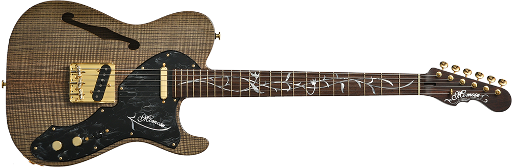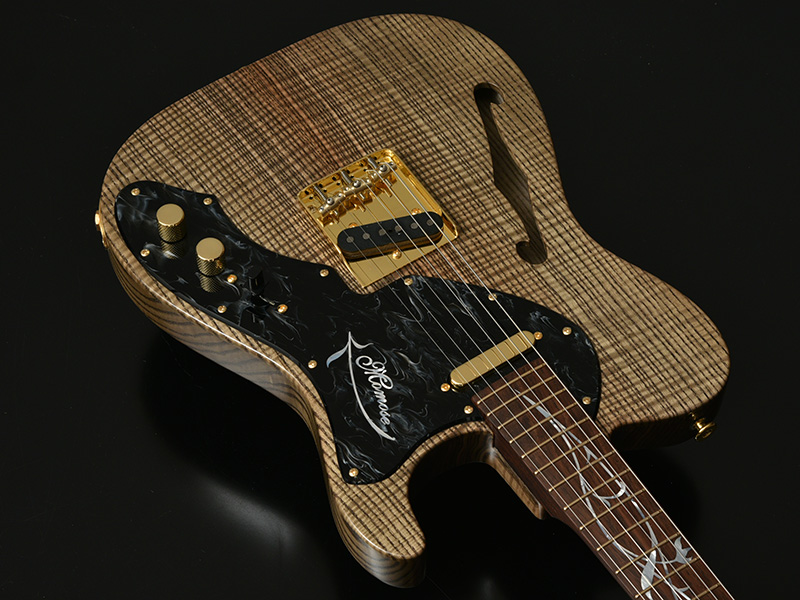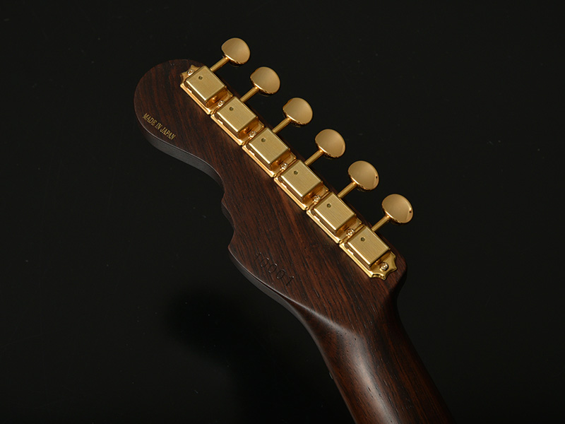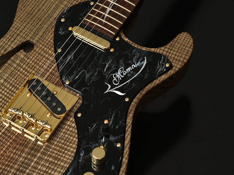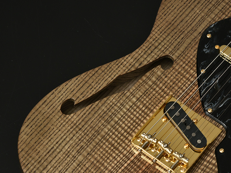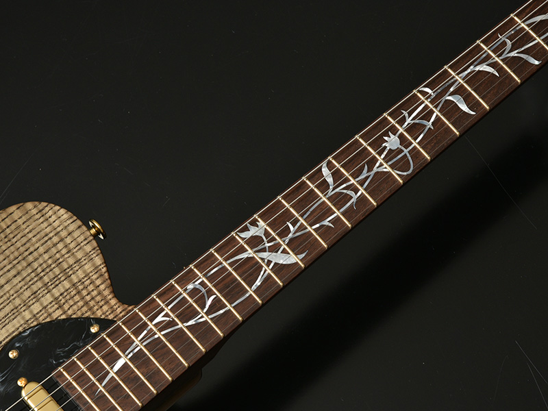 「神の時代の木」を意味する神代木をボディに使用した限定モデルです。神代木は火山の噴火などで灰の中に埋もれたまま、腐らず1000年以上残され、何かのひょうしに出土する、という大変めずらしいものです。タモの杢が非常によく出ており、目の詰まった年輪と杢の格子模様が印象的です。