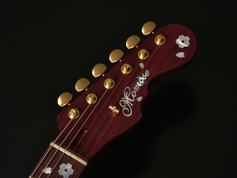 2019年春のMomose Yozakuraモデルでは桜の木の中でも虎杢(フレイム杢)が浮かぶ極上の素材をボディトップに配しました。その木目を最大限に生かすために、従来の夜桜ブラックよりも少しだけ明るめに仕上げます。漆黒の闇の中、月の灯に照らされた桜の影をイメージし、桜材が持つ質感を引き出す、塗装職人渾身のカラーリングです。