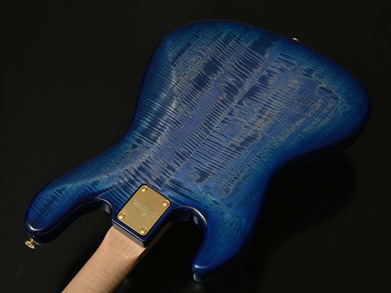 結果として2019スペシャルコレクションの1アイテムとして、このフレイムトチを使用したブルーのシースルーフィニッシュモデルが完成いたしました。