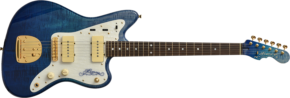 結果として2019スペシャルコレクションの1アイテムとして、このフレイムトチを使用したブルーのシースルーフィニッシュモデルが完成いたしました。